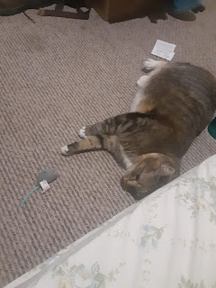 She has been playing with her mouse and the side of the bed in various unflattering positions.